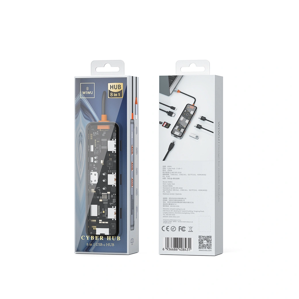 Material: Sink ərintisi * Hər bir detalı göstərmək üçün innovasiya şəffaf dizayn *Ultra sürətli məlumat ötürülməsi, USB 3.0 üçün 5Gbps sürətli transferi dəstəkləyir *4k@30HZ TV Ekranı *100W PD sürətli şarj *1000 Lan RJ45 sürətli transfer Notebooklarda 1 Type-C Çıxışını 8 type-C çıxışı etməyə kömək edir